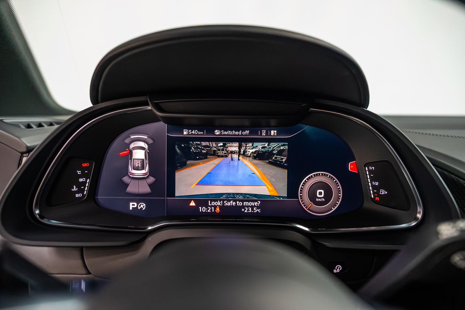 - Rear-view camera with parking sensors
