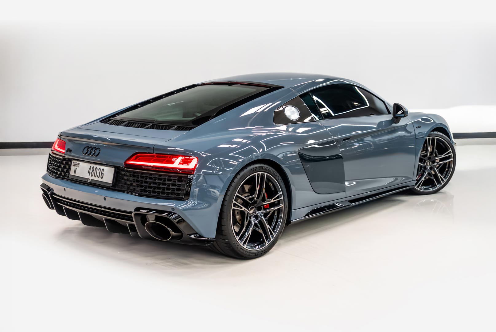 Audi R8 V10 Nardo Grey 2023 48036-K · Daily Rates · Free Delivery