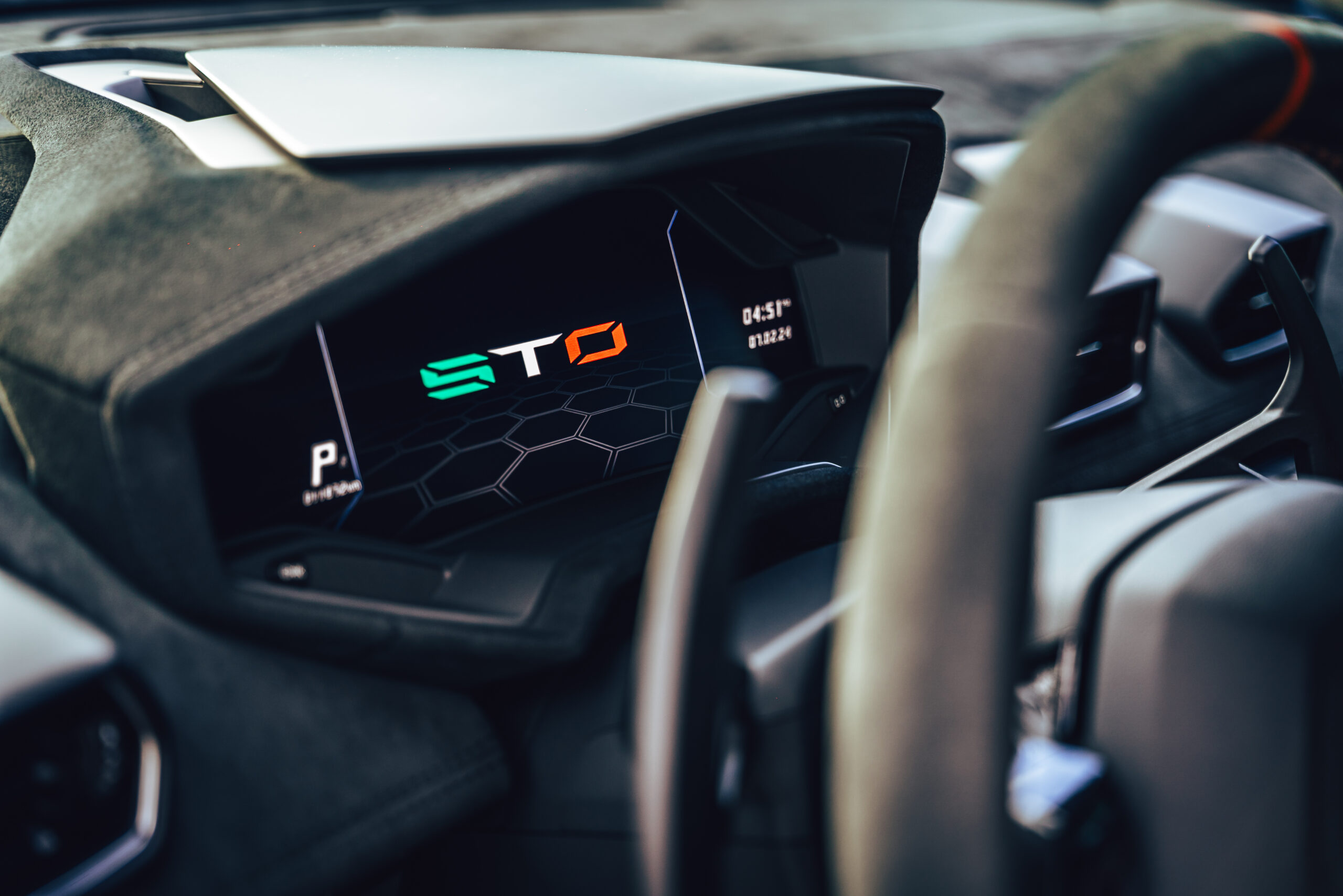 Inside, the cabin is focused entirely on the driver. Lightweight materials, Alcantara racing seats, and a minimalist cockpit design create a pure motorsport feel. Every element is built to enhance control, precision, and connection with the road.